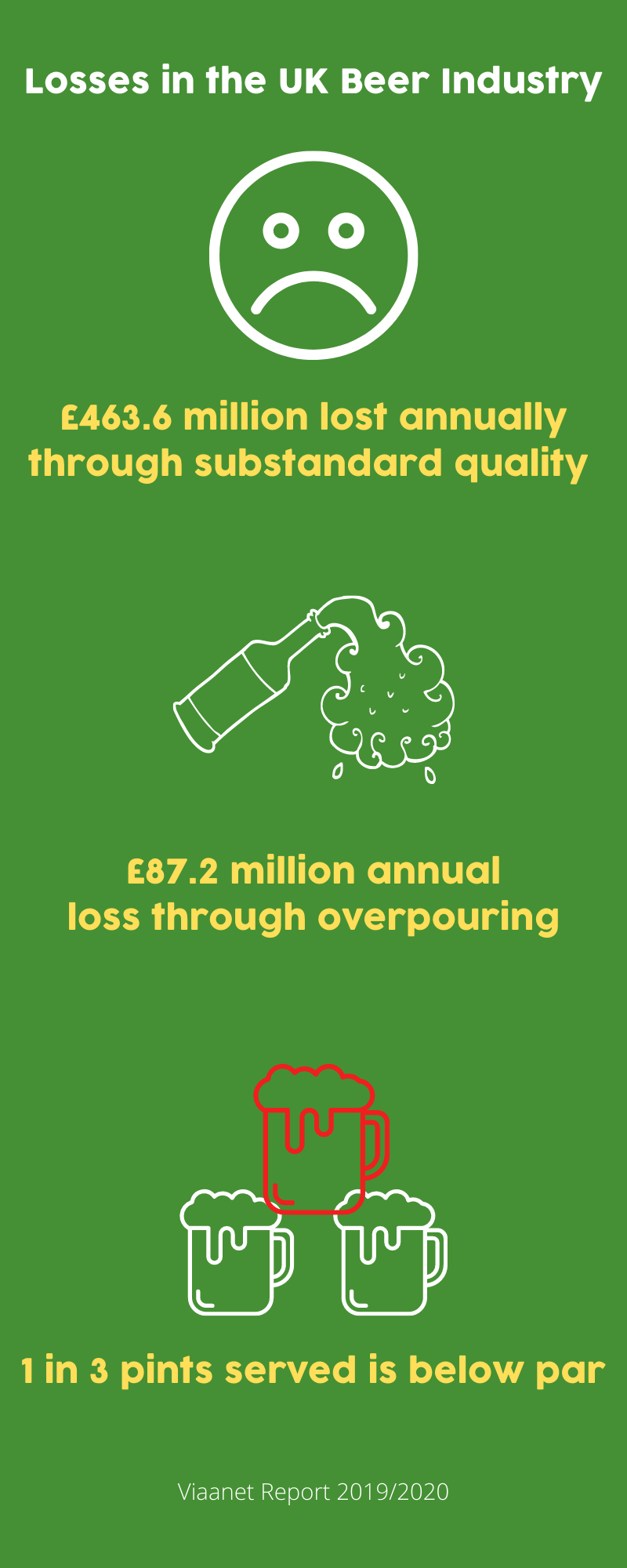 "Data research group Vianet found that the on-trade UK beer industry wastes £87.2 million per year as a consequence of pour loss due to overpouring and fobbing."
